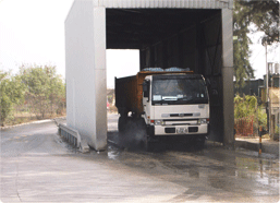 The main haul road will be kept clear of dusty materials or sprayed with water. |