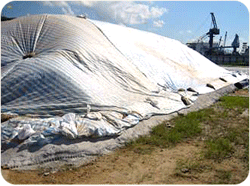 Any stockpile of dusty materials will be covered entirely by impervious sheeting and placed in an area sheltered on the top and on the three sides. |