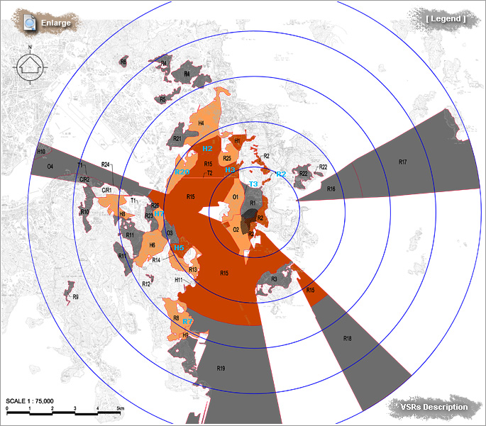 Most of the sensitive residential receivers are relatively distant from the Extension. With mitigation measures in place, the visual impacts to the sensitive residential receivers would range from "Insubstantial" to "slight" at the visual sensitive receivers during construction phase and slightly changed to "Insubstantial to moderate" during the operation and restoration phases as the volume and height of the landfill gradually increase. During the aftercare phase, the impact will be reduced to "Insubstantial to slight" on day 1 of the aftercare phase, when landfilling operations have ceased; and further reduced to "Insubstantial" as the landscape restoration gradually matures. Visual Impact During Construction Phase [ Mouse over the VSR number to see the description and click the VSR number in purple colour to see the photomontages ]