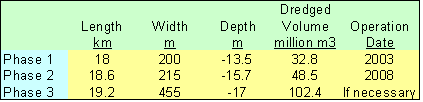 widening the channel to 250m would be approximately 10 Mm3. There would also be the need to conduct