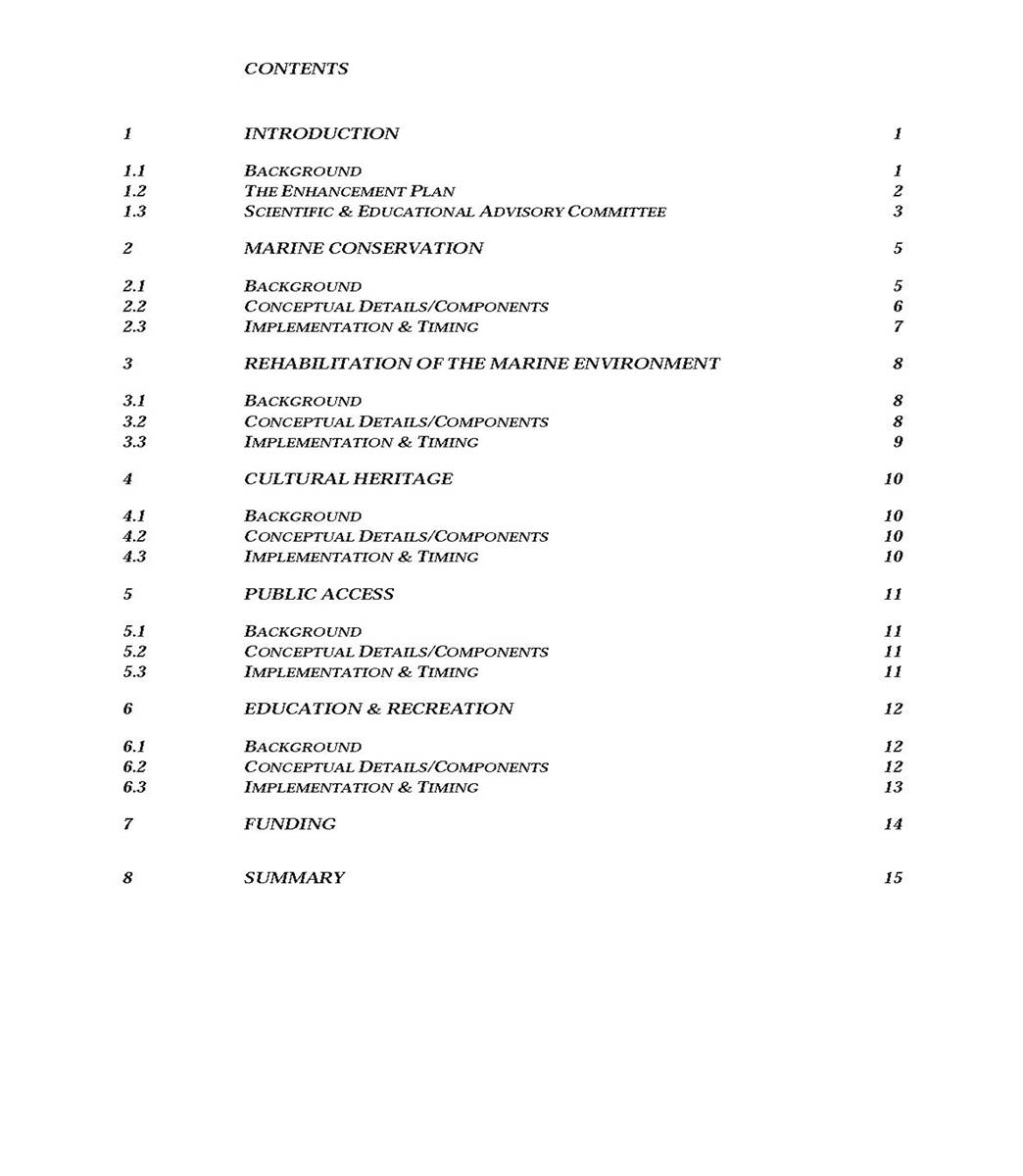 recreational use and to maximise educational opportunities. This component of the plan would focus