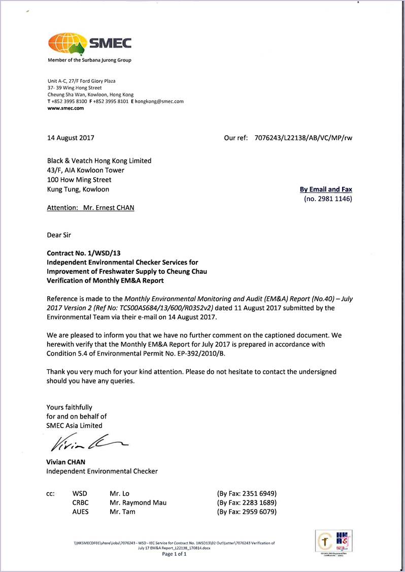 Environmental Monitoring and Audit (EM&A) Report (No.40) ¡V July 2017 |