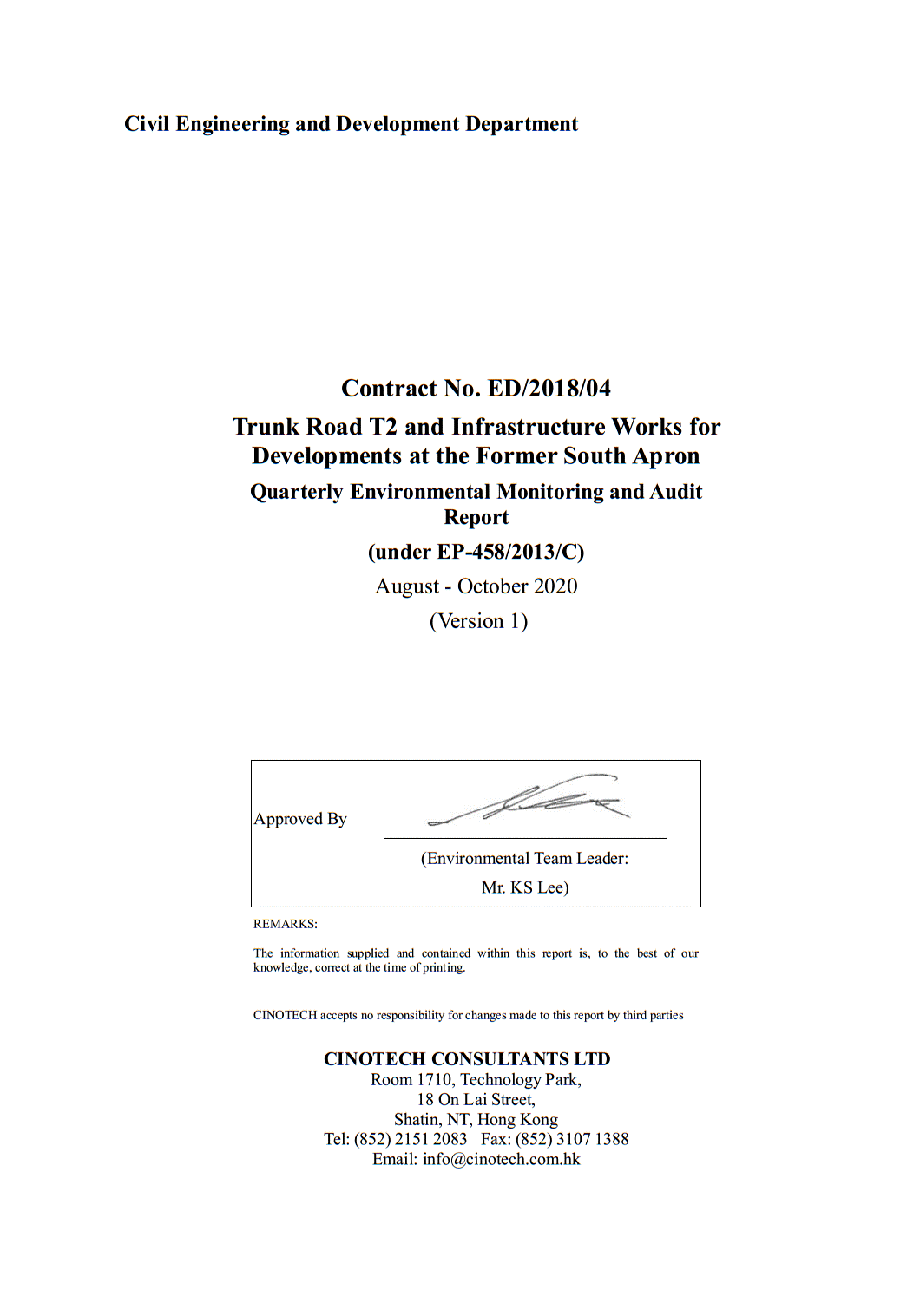 prepared by the Environmental Team (ET), Cinotech Consultants Ltd., for “Trunk