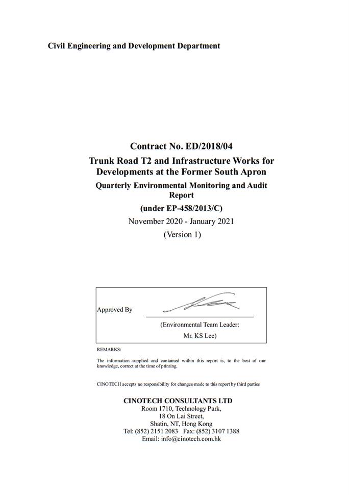 4.1 Environmental monitoring works were performed in the reporting period and all monitoring results were checked and reviewed. A summary of exceedances is attached in Appendix I.