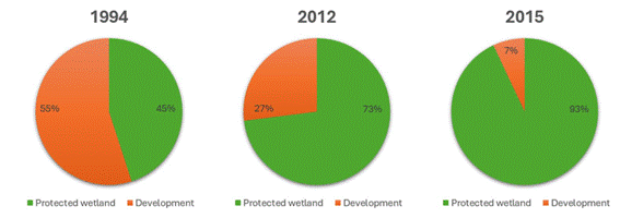 Development Site area reduced from 98.3ha to 40ha; Managed Wetland area increased from 41ha to 127.7ha |
