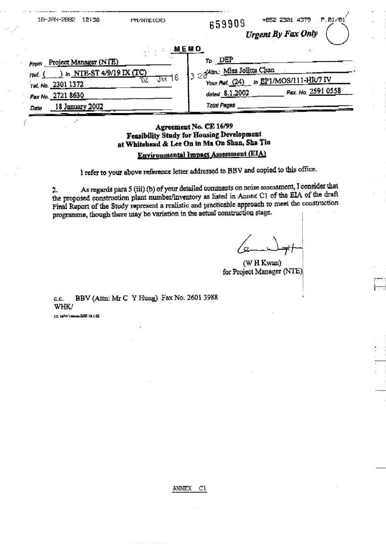 TMEIA Daytime Construction Noise Standards : residential 75 dB(A), educational institution 70 dB(A) (65 dB(A) during examinations) |