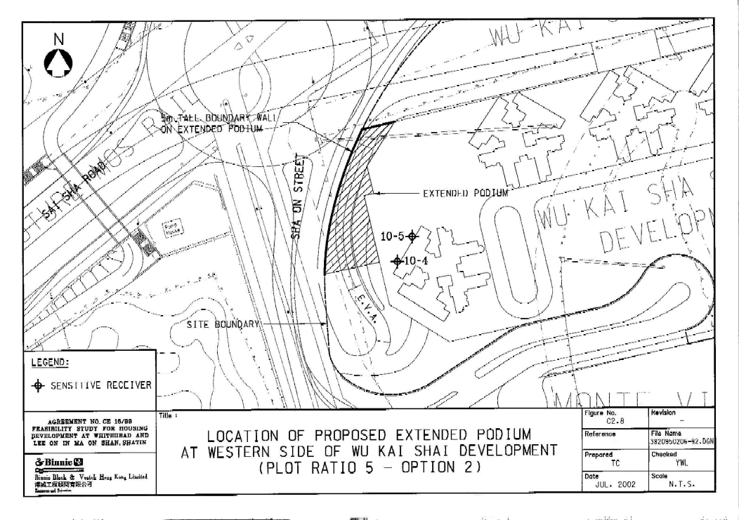 | Table C2.6 : Predicted Unmitigated and Mitigated Traffic Noise Levels at representative NSRs at Western Side of Wu Kai Sha Station Development (Extended Podium as Mitigation Plot Ratio 5.0 Option 1) |