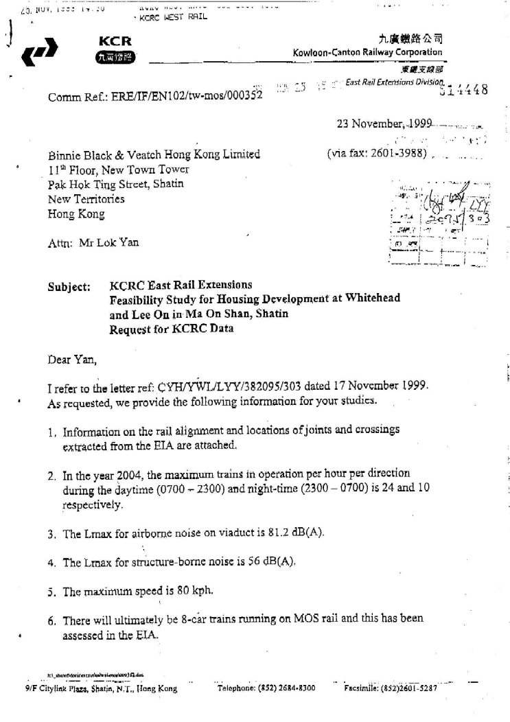 Deck Reflection correction (+2 dB(A)) based on assessment methodology of West Rail EIA included. |