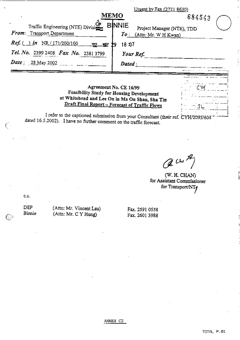 Table C2.2 Predicted Traffic Noise Levels of Representative NSRs at Year 2023 |