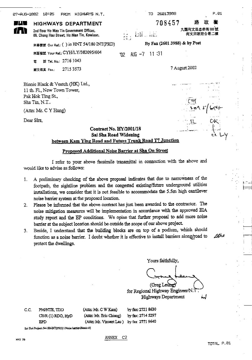 Location of the NSRs and Mitigation Measure, please refer to Figure C2.7. |