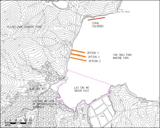 the impact to coral, seagrass bed and mangrove stand in proximity to the