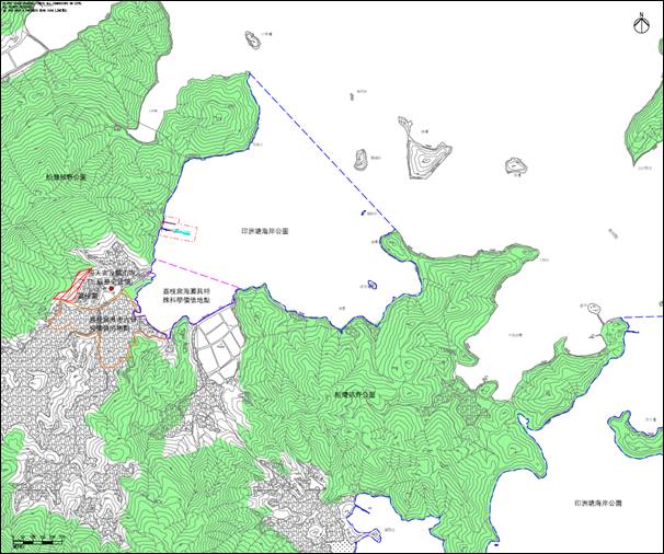 1.2.1.1 本工程項目地點位於新界東北面的海岸。項目位於香港聯合國教科文組織世界地質公園(印洲塘景區)及印洲塘海岸公園內,亦部分落入船灣郊野公園範圍內。荔枝窩海灘具特殊科學價值地點位於現有碼頭以南約 150 米。鄰近的荔枝窩村內的兩座建築物, 協天宮及鶴山寺,屬於三級歷史建築物,荔枝窩具考古研究價值的地點亦在鄰。本工程項目的位置圖載於圖1.1。
