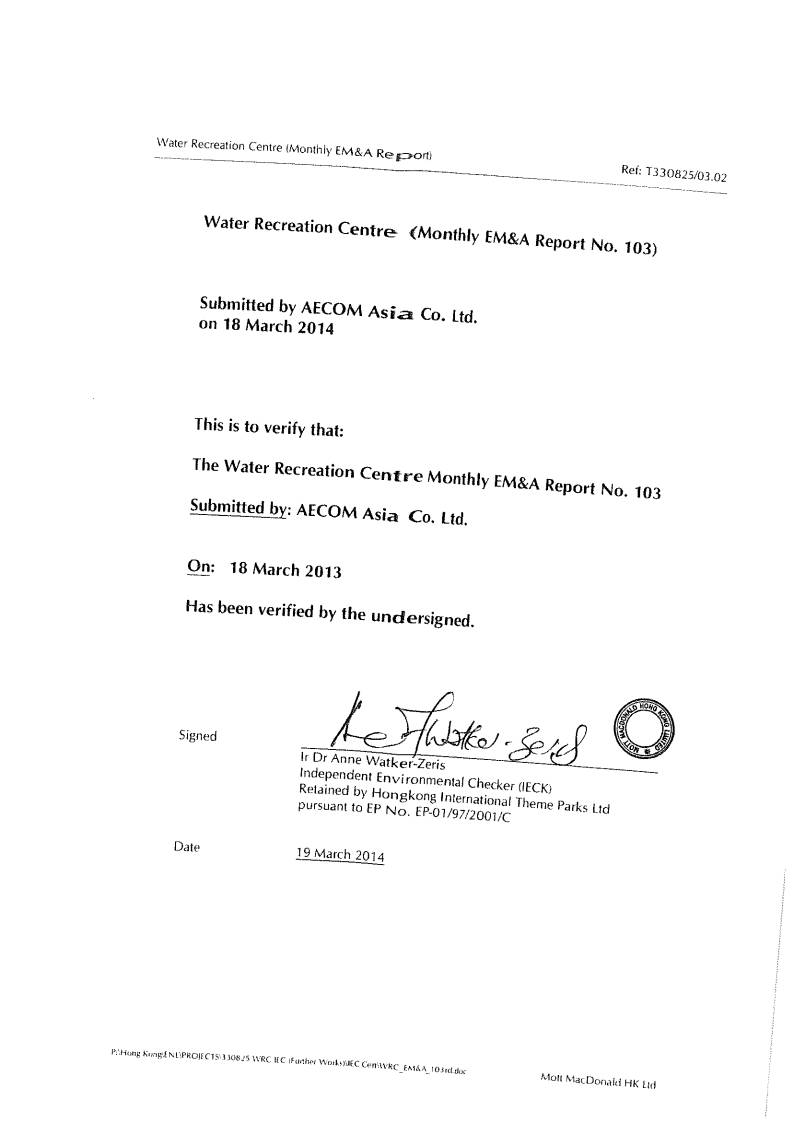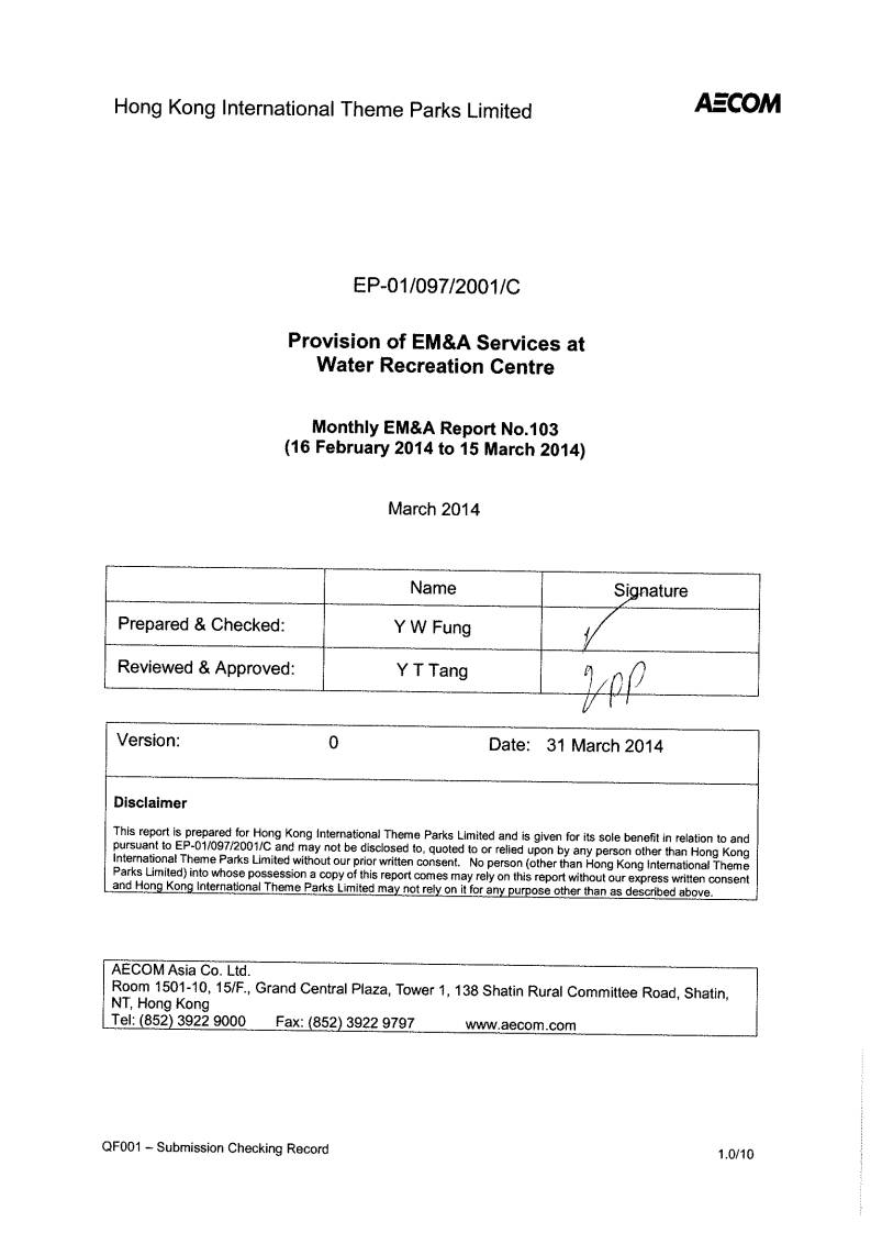 AECOM Asia Co. Ltd. (integrating the operation of ENSR Asia (HK) Ltd.) (hereinafter referred as the “ET”) was appointed by Hongkong International Theme Park Ltd. (