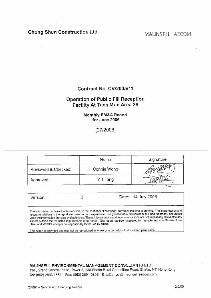 Summary of EM&A