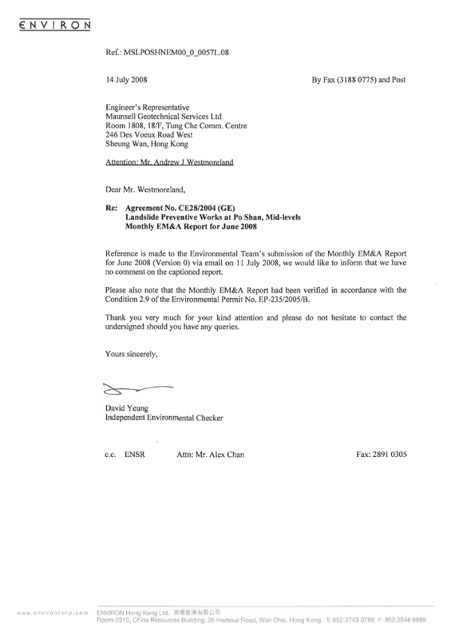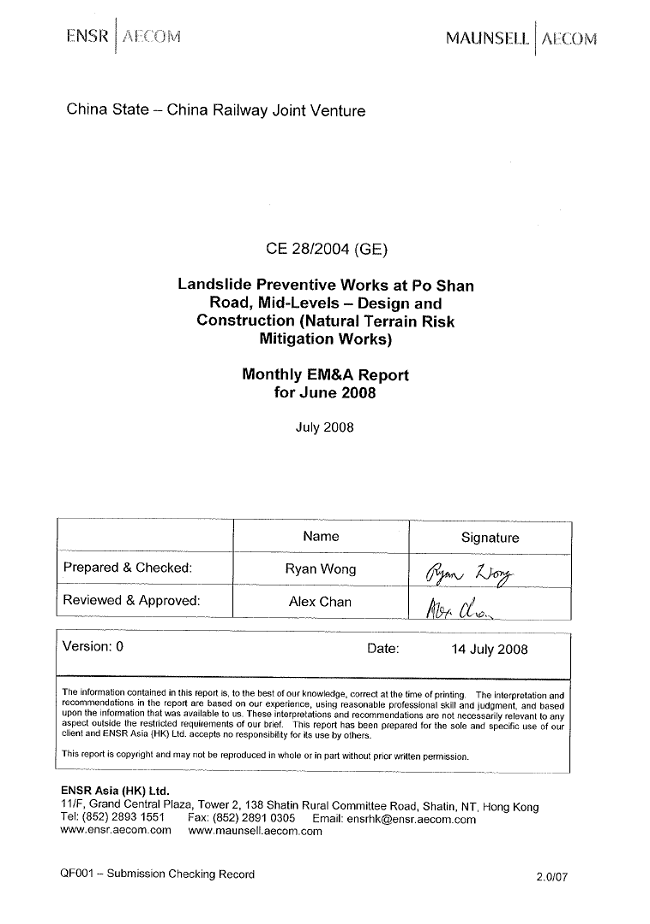 commissioned as the Contractor of the Project. ENSR Asia (HK) Ltd. was employed