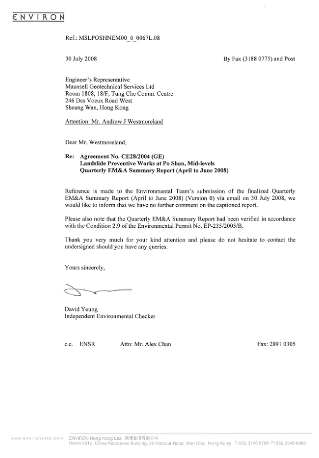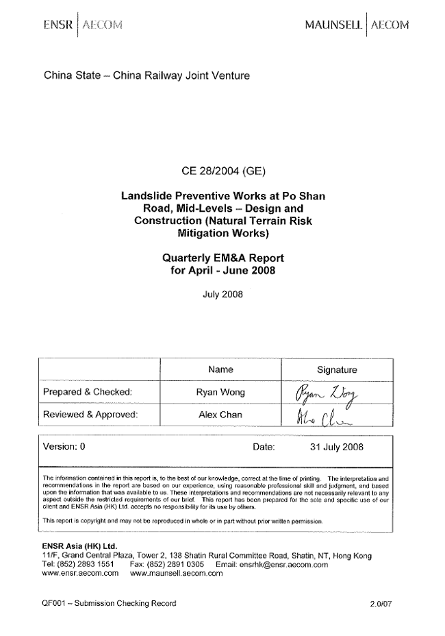 commissioned as the Contractor of the Project. ENSR Asia (HK) Ltd. was employed