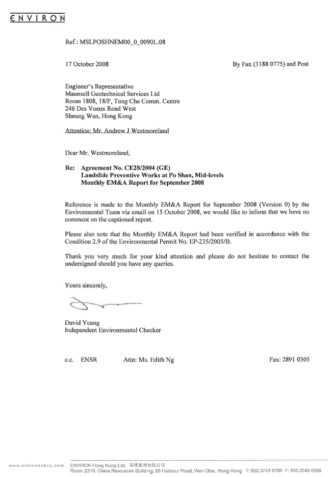 commissioned as the Contractor of the Project. ENSR Asia (HK) Ltd. was employed