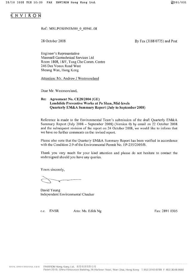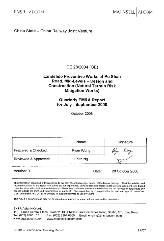 commissioned as the Contractor of the Project. ENSR Asia (HK) Ltd. was employed
