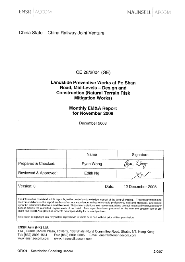 This report documented the findings of EM&A works conducted in the