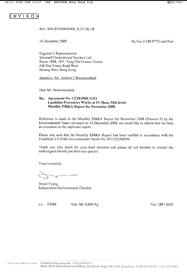environmental monitoring in December 2008 is provided in Appendix L.