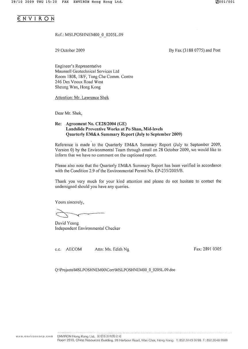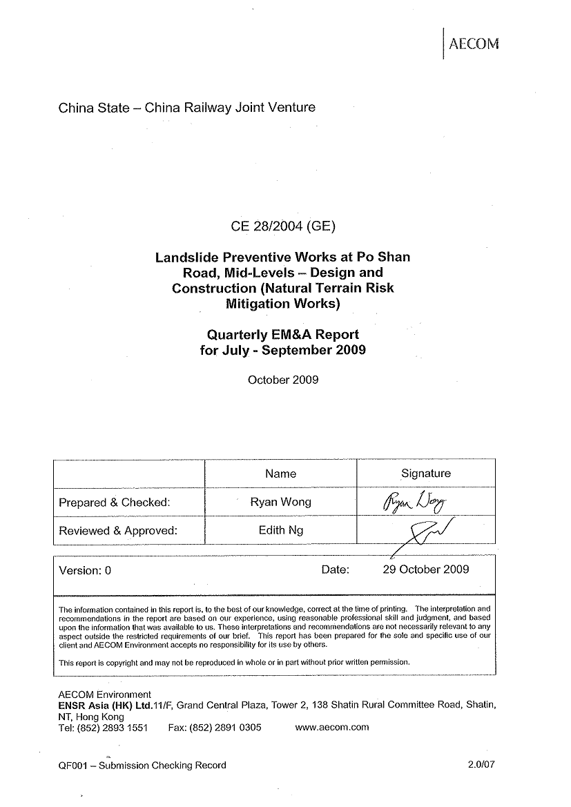 report documented the findings of EM&A works conducted in the period from July 2009 to September