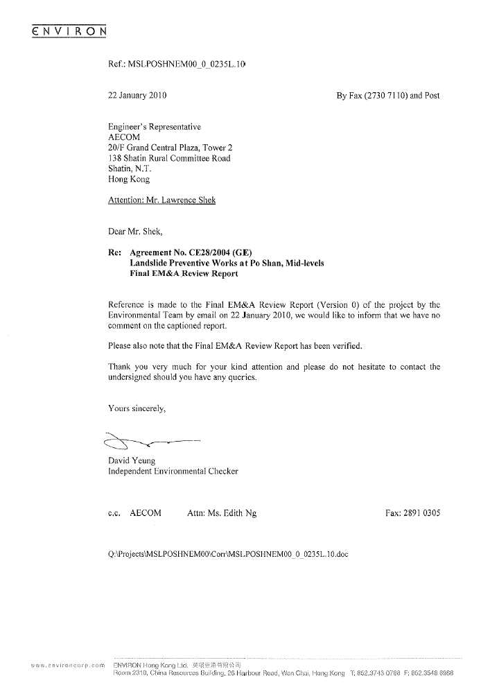 of the Project was approved by EPD on 31 December 2009.