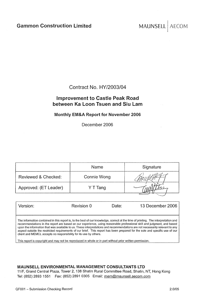Impact Noise Monitoring Results during 07:00 – 19:00 on Normal Weekdays