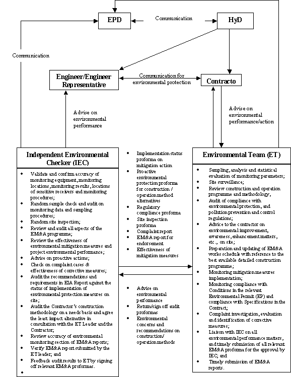 1.5.1 The project organisation and lines of communication with respect to environmental protection works are shown in Figure EM1.2. The roles and responsibilities of the various parties involved are described in following sections.
