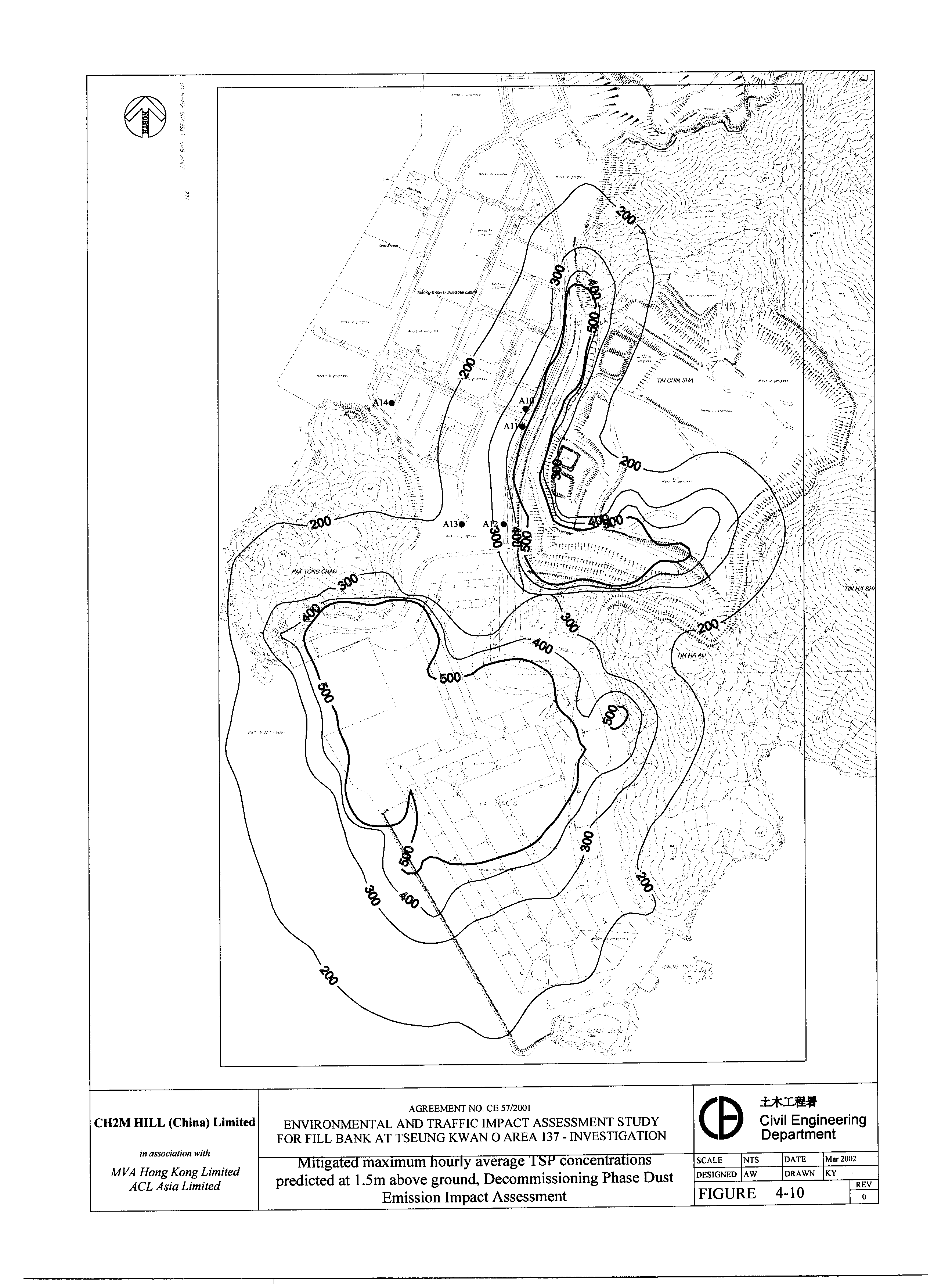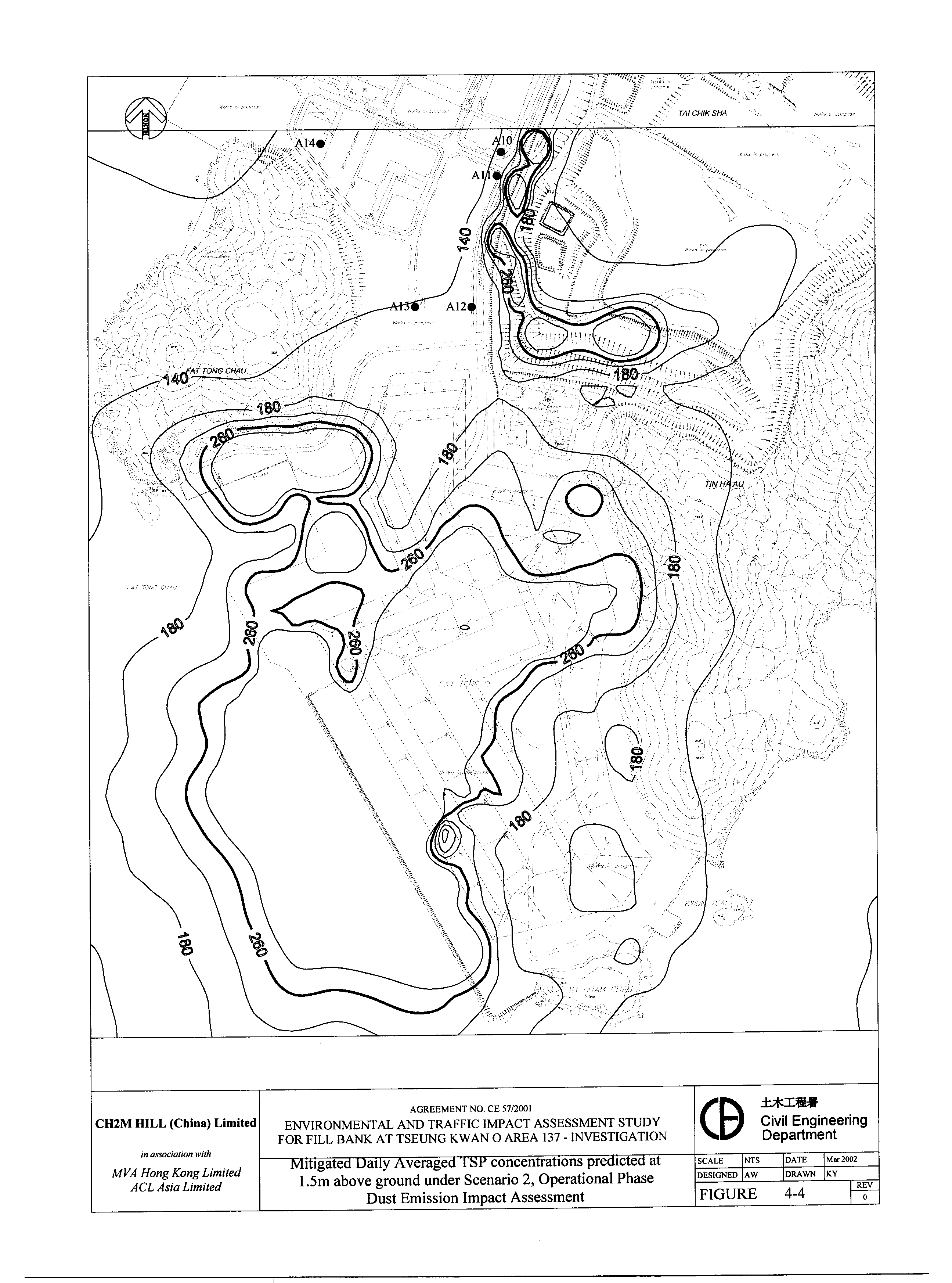 10.2.5 The air quality impact assessment revealed that with the implementation of the recommended dust control measures, the mitigated dust levels would meet the relevant dust criteria. It is recommended to undertake monitoring of Total Suspended Particulate (TSP) concentrations during the establishment, operation and decommissioning phases of the fill bank for checking the implementation and environmental performance of the dust control/ mitigation measures implemented by the Contractor. Event/ Action Plan should be triggered by exceedance of action/ limit levels. Regular site audits shall also be carried out by the ET and independent audits carried out by the IC(E) to check for the implementation of the recommended air quality mitigation measures.