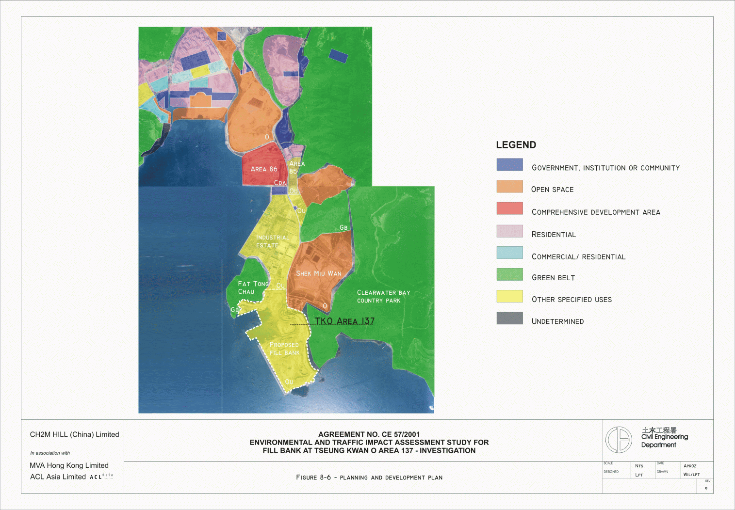 11.1.2 The Government identified that there will be significant shortfall in public filling capacity from October 2002 to 2005, and proposed to establish and operate a temporary fill bank at Tseung Kwan O (TKO) Area 137 after a site selection process. With consideration on site availability, minimum site area requirement, site accessibility, distance separation from nearby sensitive receivers, and surmountable extent of the potential environmental and traffic impact associated with the public fill delivery trucks using the fill bank, TKO Area 137 was identified to be the suitable site. The ex-Kai Tak airport was considered as an alternative site in the comparison but cannot meet the site availability requirements as contaminated land remediation works have been taking place and construction/ demolition works have been planned to take place from 2003 for future developments under the South East Kowloon Development Scheme.
