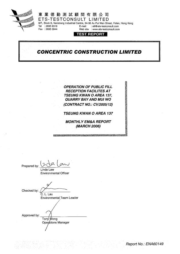9.1 Summary of air quality, noise and marine water quality |