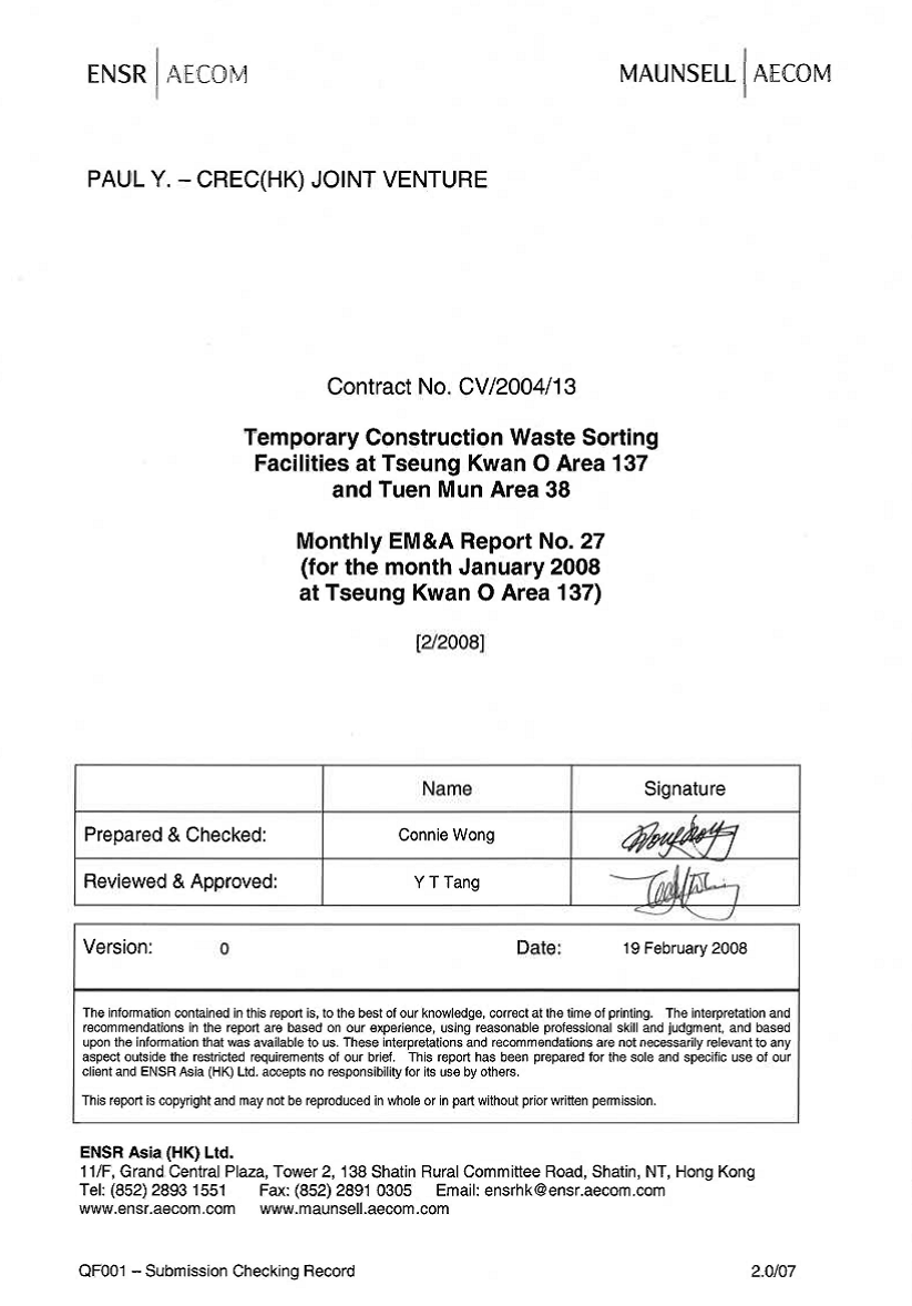 Table 3.1 Actual Amounts of Waste Generated in January 2008