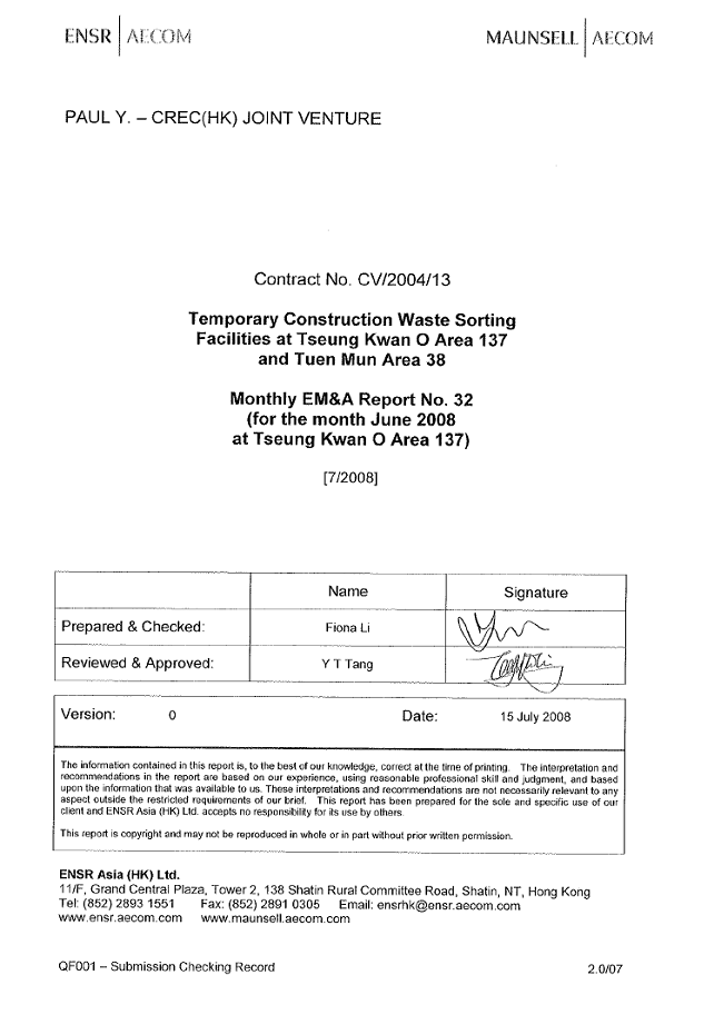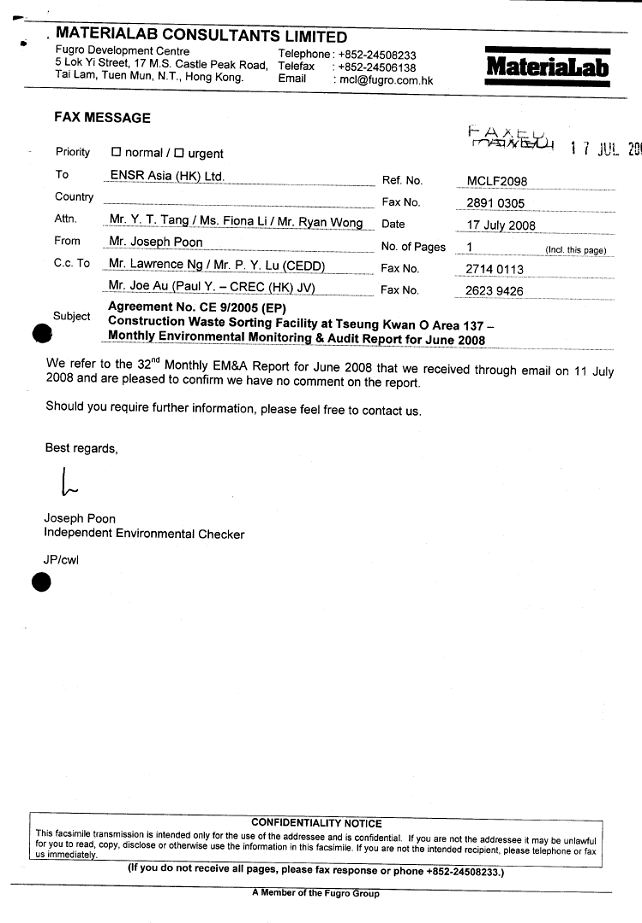 environmental monitoring programme for July 2008 is shown in Appendix L.