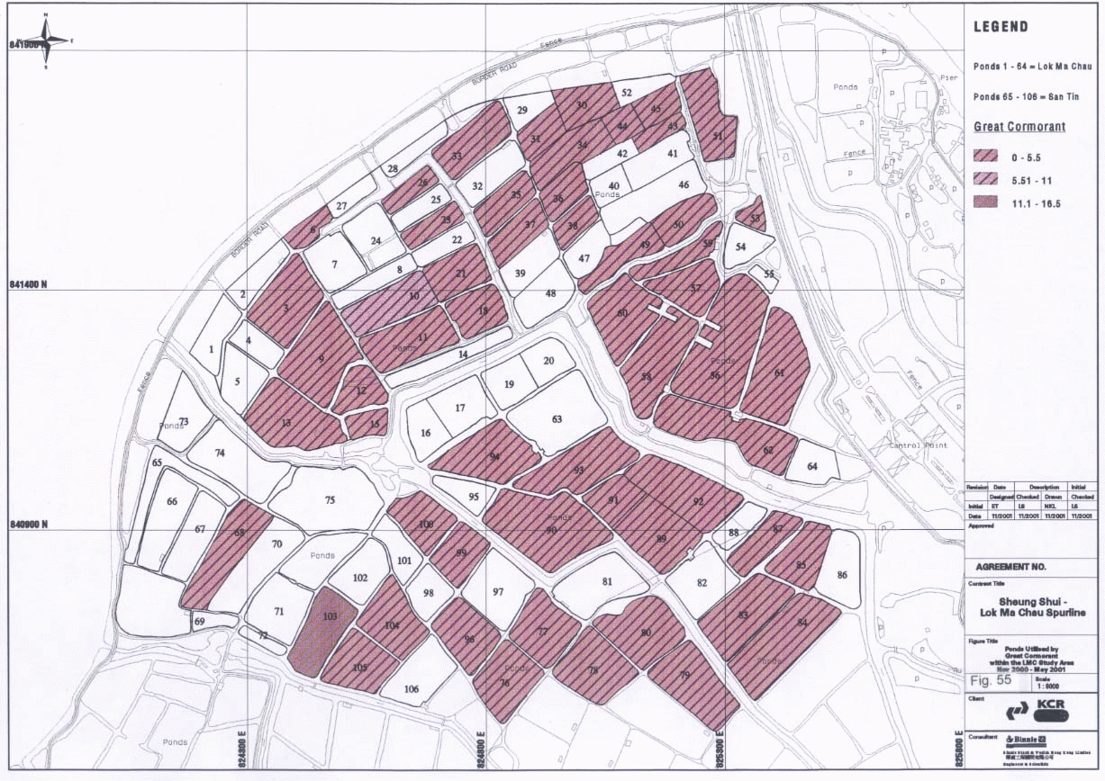 1.4.35 The Great Cormorant is a winter visitor to Hong Kong that is abundant in Deep Bay from October to early April. Most birds feed in Deep Bay, often in large flocks that occasionally hold up to 2500 birds; a significant proportion also feed in the fish ponds of Deep Bay, and much smaller numbers feed and roost in other coastal waters such as those around Lantau and, to a lesser extent, Cheung Chau.