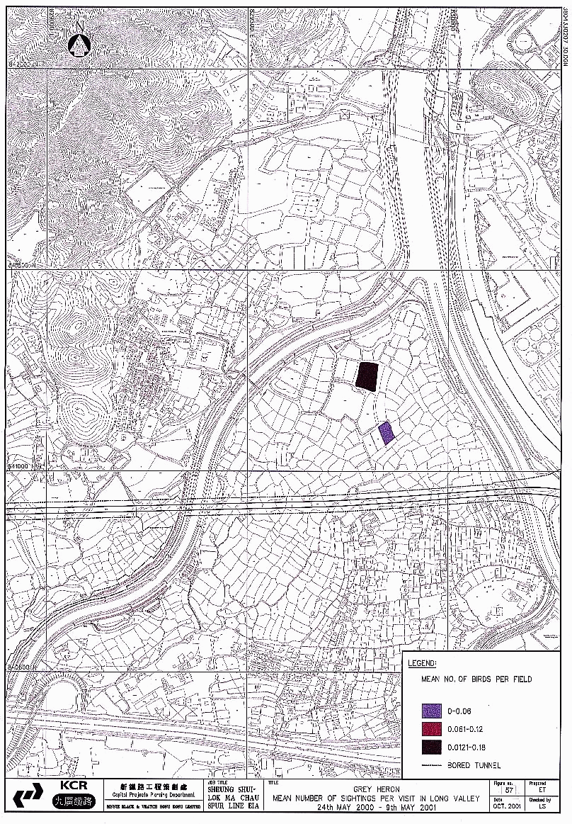 1.4.40 In Hong Kong, the Grey Heron is an abundant winter visitor to Deep Bay, and is scarce in summer, with occasional breeding records. Numbers wintering have increased from 732 in 1987 to a peak of 1962 birds in February 1996. Grey Herons occur mainly in Deep Bay where they feed in both intertidal and fish pond or gei wai areas, and a substantial part of the population appears mainly to feed nocturnally. Rose and Scott (1997) estimate the east-southeast Asian population to lie in the range 25,000 to one million birds. The five-year mean of peak winter counts from 1994-95 to 1998-99 is 1280, which means that Deep Bay on average supports 0.13 to 5.2% of the regional population (Carey et al. 2001).