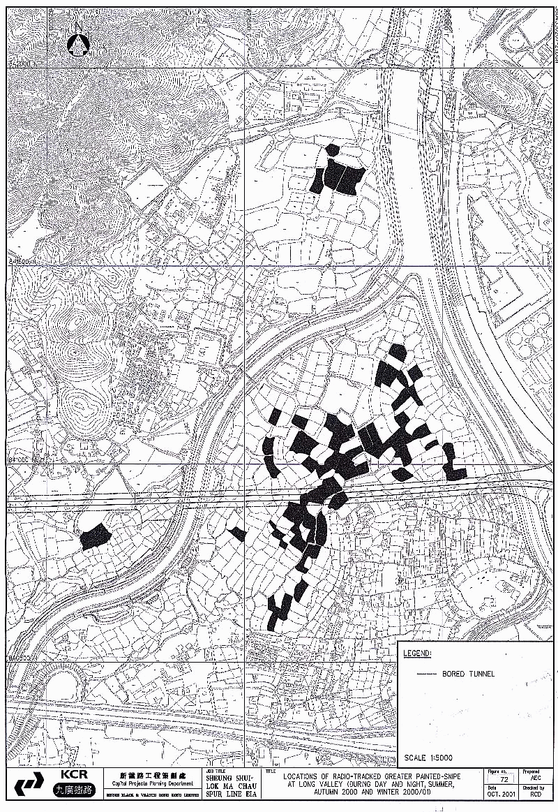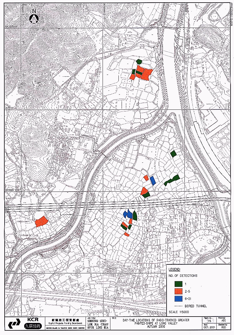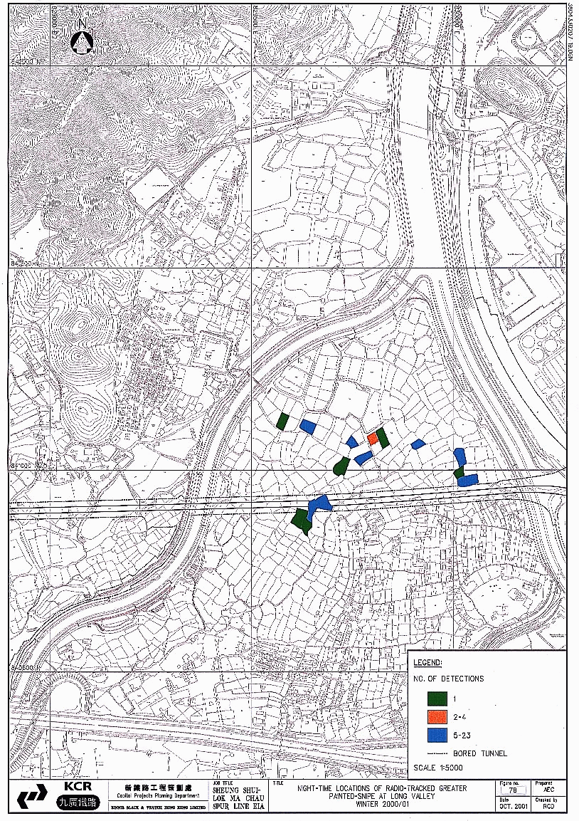1.4.92 The findings of the radio-telemetry are summarised in Figures 72, 73, 74, 75, 76, 77, 78. As can be seen from Figure 71 (showing all used fields), radio-tracked Greater Painted-snipe were widely recorded within the Long Valley Baseline Survey Study area.
