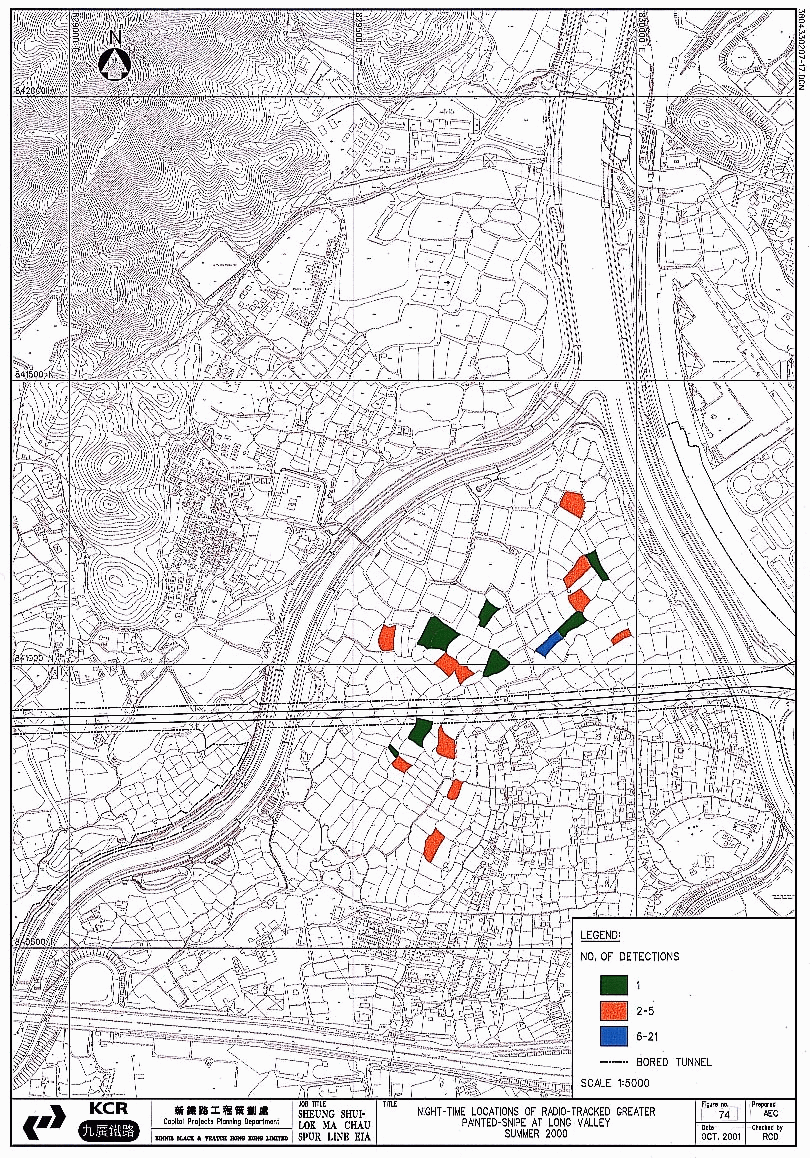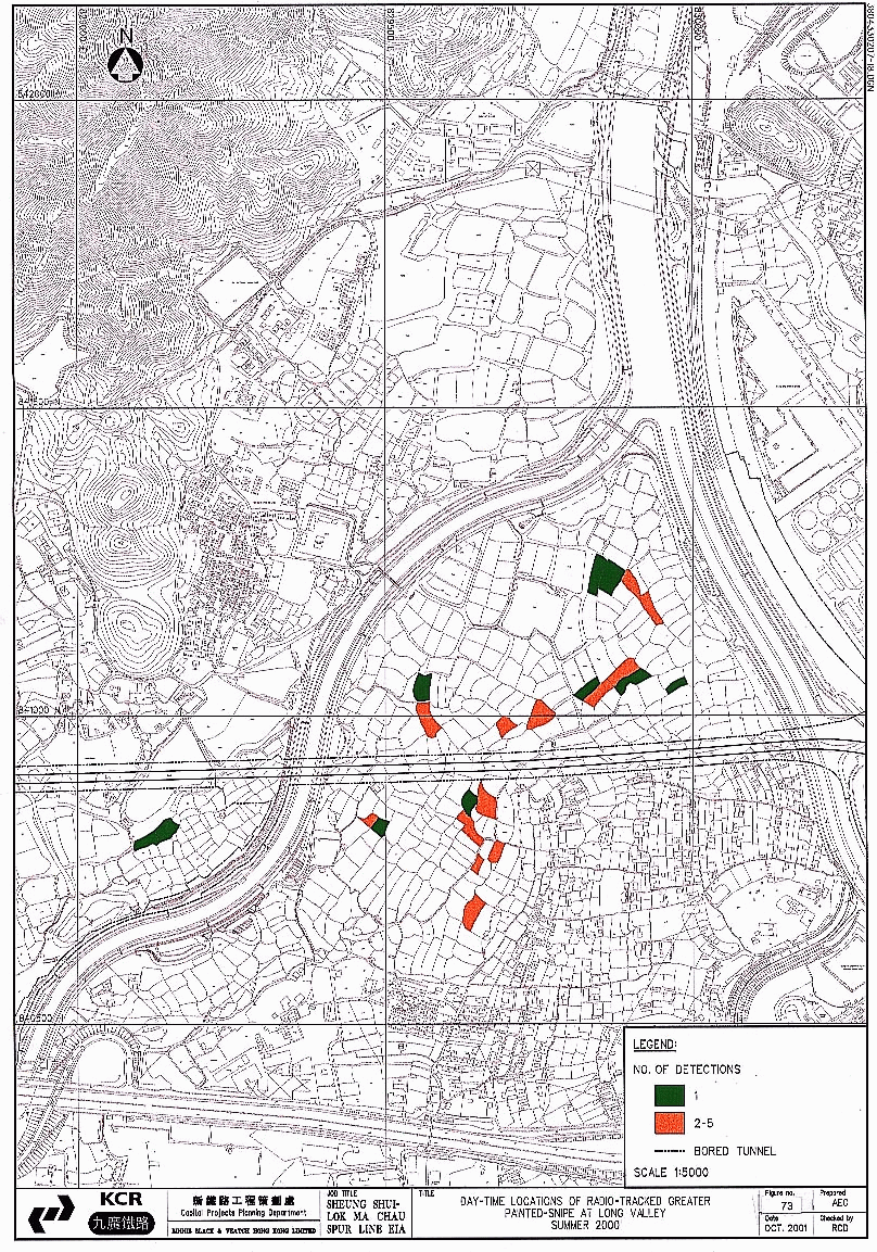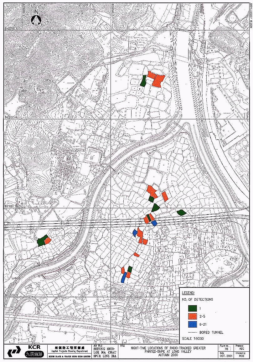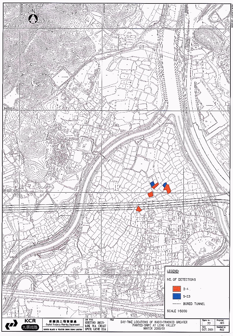 1.4.92 The findings of the radio-telemetry are summarised in Figures 72, 73, 74, 75, 76, 77, 78. As can be seen from Figure 71 (showing all used fields), radio-tracked Greater Painted-snipe were widely recorded within the Long Valley Baseline Survey Study area.