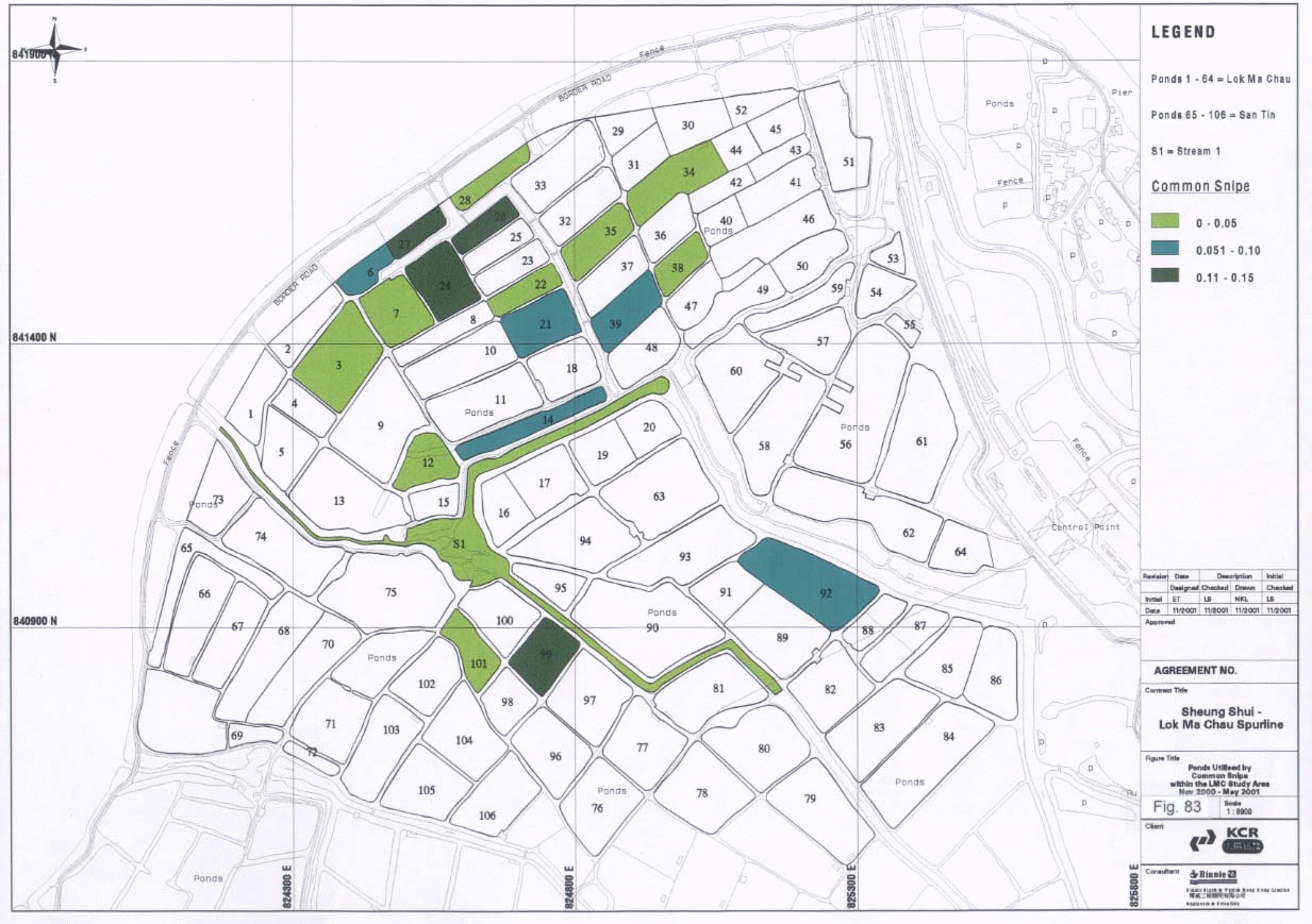 1.4.94 While active wet agriculture (vegetables) was consistently the habitat with the highest number of detections, it was also the most widespread habitat type within the study area (Table 5). When the data area is converted to a density to allow for the differences in habitat availability, certain habitats were shown to support higher densities than active wet agriculture (vegetables).