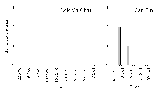 1.4.112 In Hong Kong a scarce passage migrant, with higher numbers in spring, and rare in summer and winter; has declined markedly during the last hundred years (Carey et al. 2001).