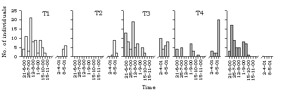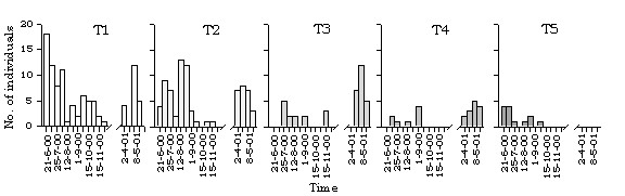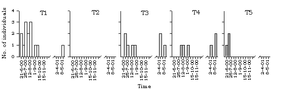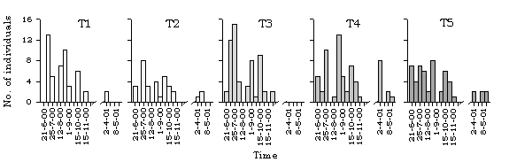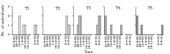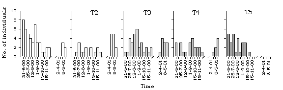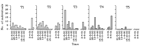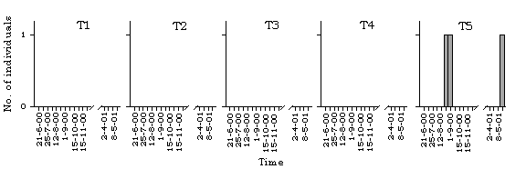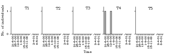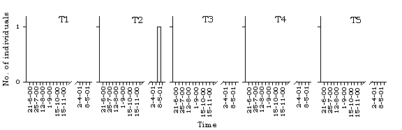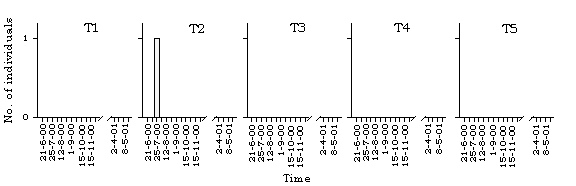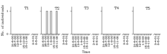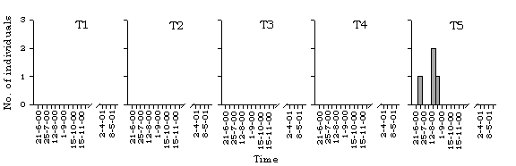 dragonfly species along different transects in Lok Ma Chau. T=transect.