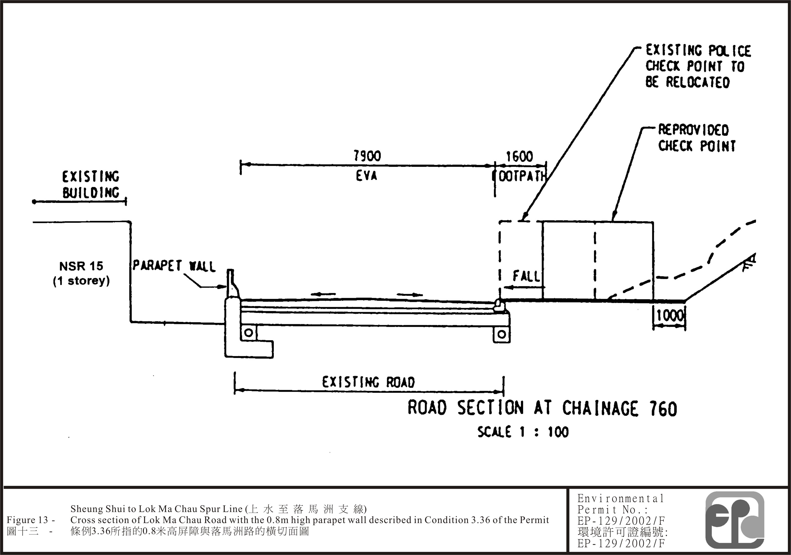 3.36 To mitigate traffic noise at Lok Ma Chau Road after operation of the public transport interchange at the Lok Ma Chau station, 0.8m high parapet wall shall be installed along the Lok Ma Chau Road at locations shown in Figures 12 and 13.