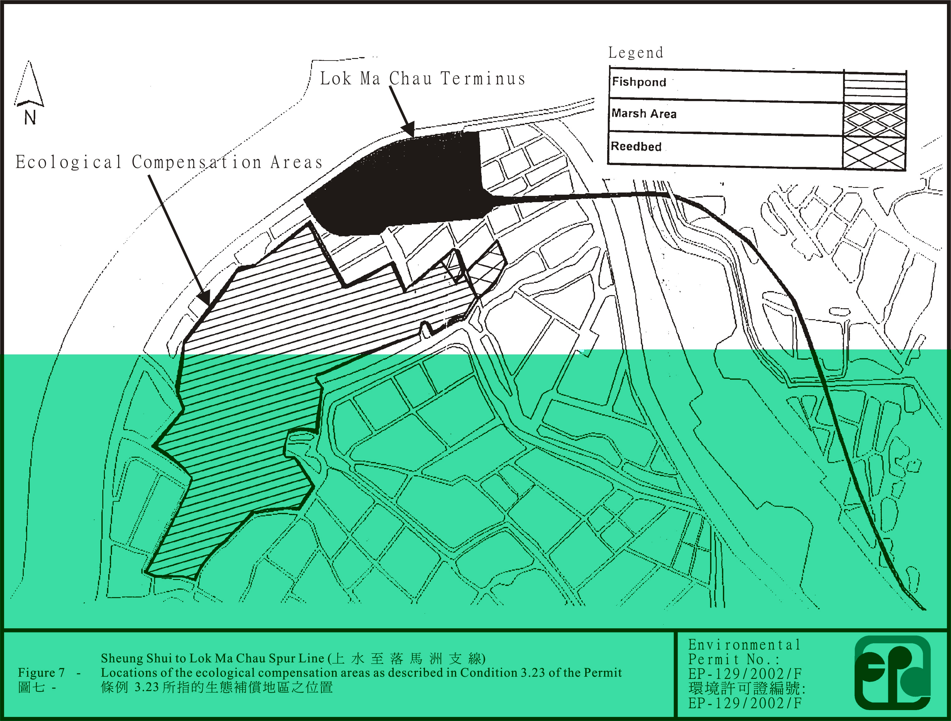 3.23 Prior to the operation of the Lok Ma Chau station, the Permit Holder shall enhance and manage an “ecological compensation area” which shall include not less than 29.65 hectares of fishponds, 0.2 hectares of marshland and 0.7 hectares of reedbed as indicated in Figure 7 attached to this Permit. The ecological compensation areas shall be established as conforming to the criteria set out in the HCMP. The implementation of measures for the establishment of the ecological compensation areas shall be certified by the ET Leader and verified by the IEC. These measures shall include, but not limited to the following: -