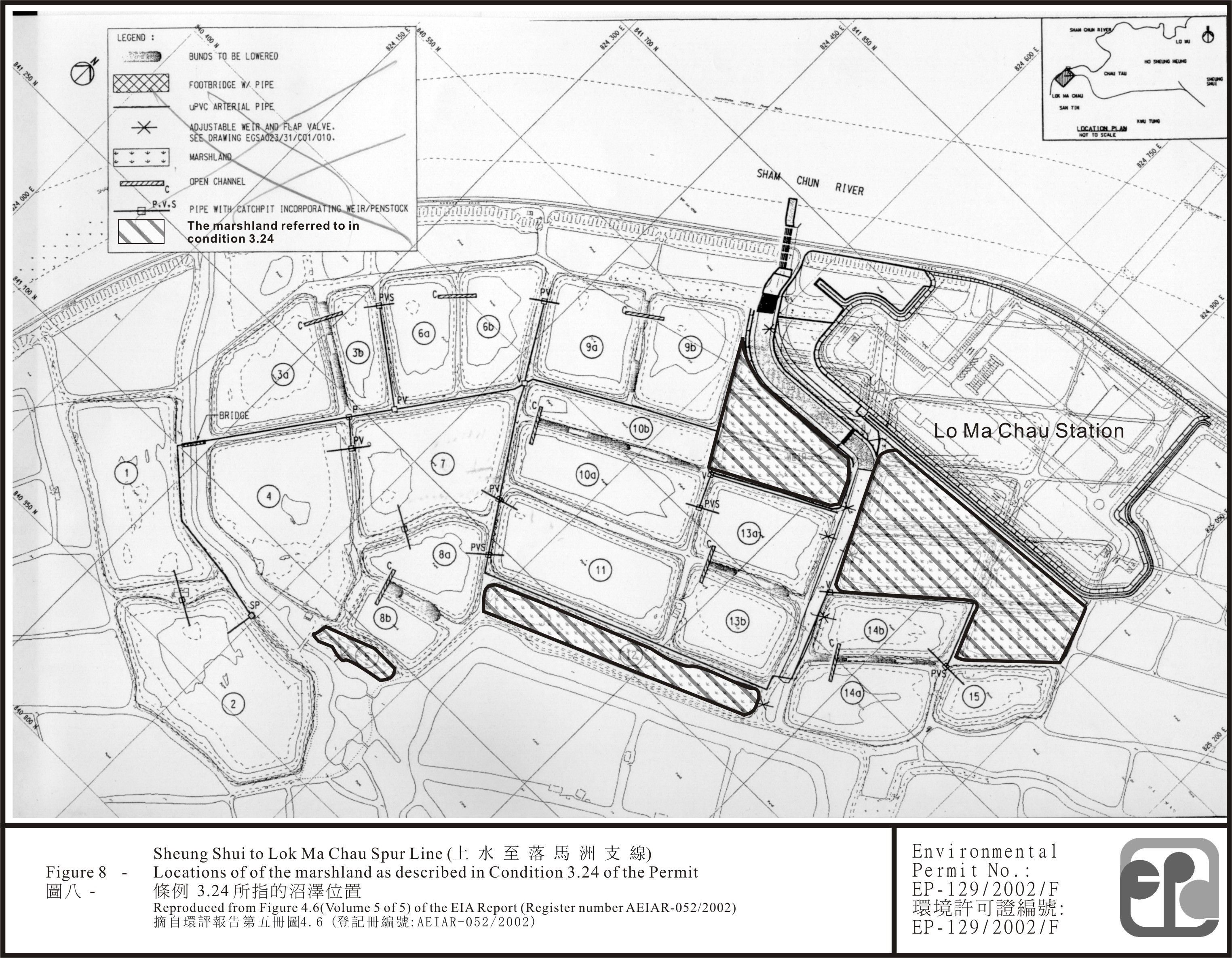 3.24 Prior to the operation of the Lok Ma Chau station, the Permit Holder shall establish not less than 4.9 hectares of marshland at locations indicated in Figure 8 attached to this Permit as conforming to the criteria set out in the HCMP. The implementation of measures for the establishment of the marshland shall be certified by the ET Leader and verified by the IEC.