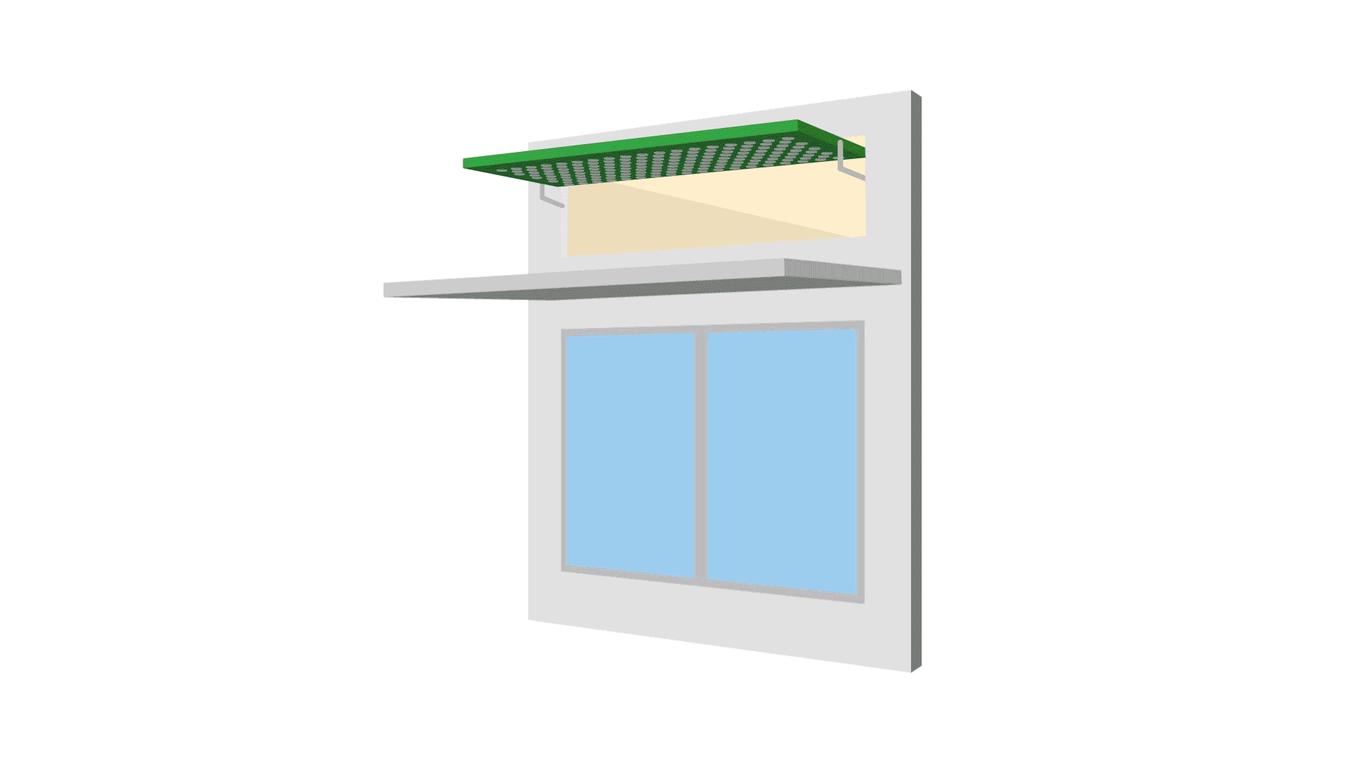 上层为上悬式窗口用作通风用途,而下层则为固定玻璃窗仅供照明之用。 在上悬式窗口底部需安装一块横向鳍片以阻隔噪音透过上悬式窗口进入房间。由於噪音可透过於上悬式窗面及横向鳍片,以单次或多重的反射传入室内,因此可於反射面应用吸音物料以提高减音效果。 噪音消减大程度上取决於上悬式窗口高度和鳍片深度的纵横比。一般而言,纵横比约为 0.6 的设定可消减 5 分贝(A)。