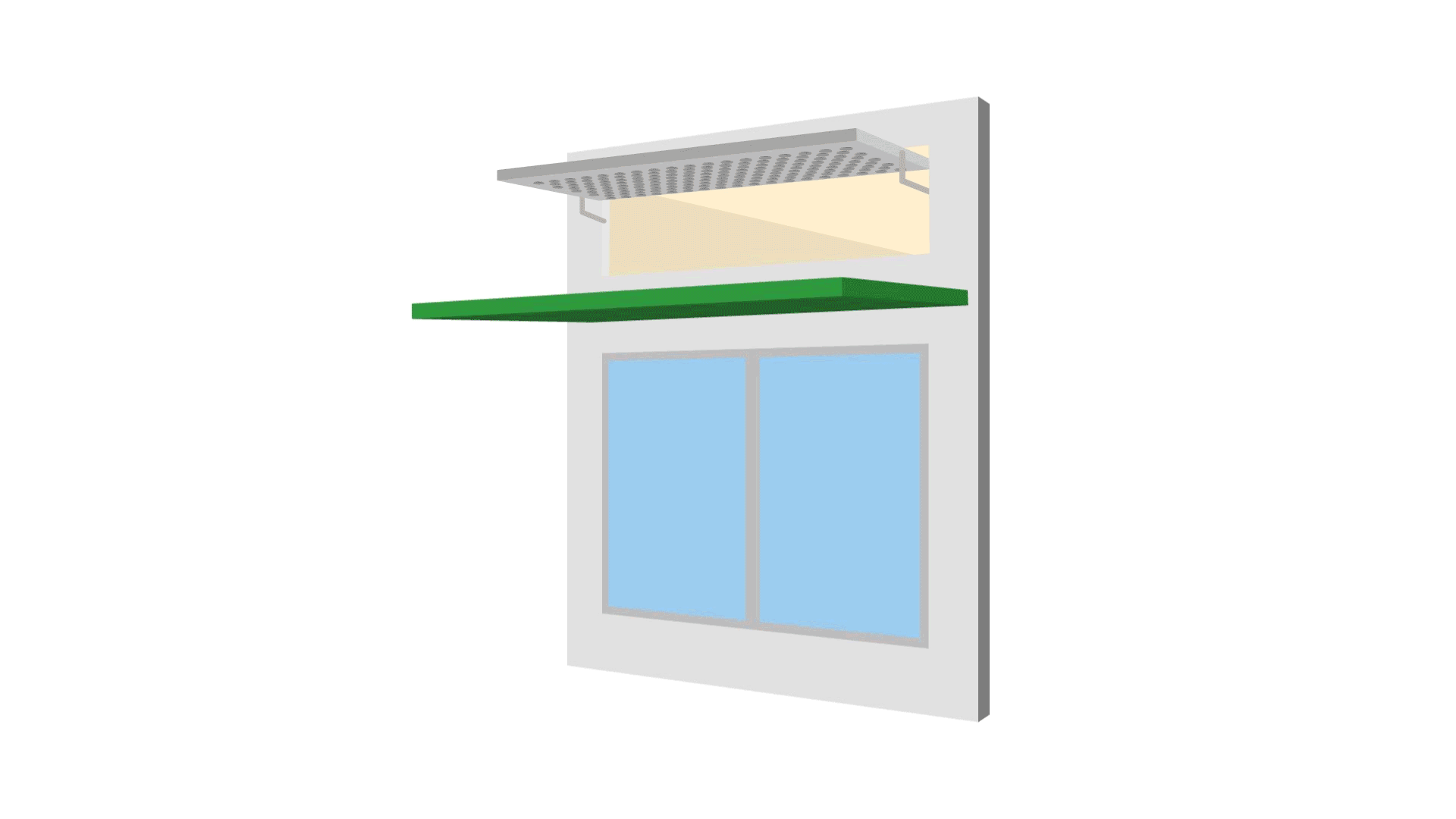 上層為上懸式窗口用作通風用途,而下層則為固定玻璃窗僅供照明之用。 在上懸式窗口底部需安裝一塊橫向鰭片以阻隔噪音透過上懸式窗口進入房間。由於噪音可透過於上懸式窗面及橫向鰭片,以單次或多重的反射傳入室內,因此可於反射面應用吸音物料以提高減音效果。 噪音消減大程度上取決於上懸式窗口高度和鰭片深度的縱橫比。一般而言,縱橫比約為 0.6 的設定可消減 5 分貝(A)。