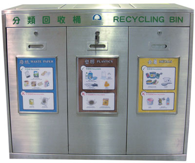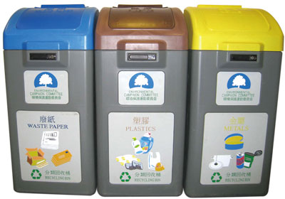- To support the promotion of waste separation at source, the Environmental Campaign Committee (ECC) has produced newly designed waste separation bins which are made of materials that can be recycled and have larger openings to facilitate the public to put in recyclables of larger sizes. Free waste separation bins are distributed to housing estates and buildings by ECC, with one set of bins earmarked for each building.
