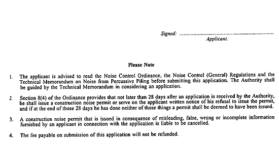 In general, application involving diesel, pneumatic and / or stream hammer would not be accepted unless the construction site is situated in Designated Geologically Difficult Areas as specified in the Technical Memorandum.">