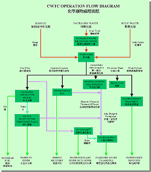 The CWTC operates a variety of treatment systems including oil/water separation, high temperature incineration, inorganic waste treatment and recovery, wastewater treatment and chemical stabilisation.