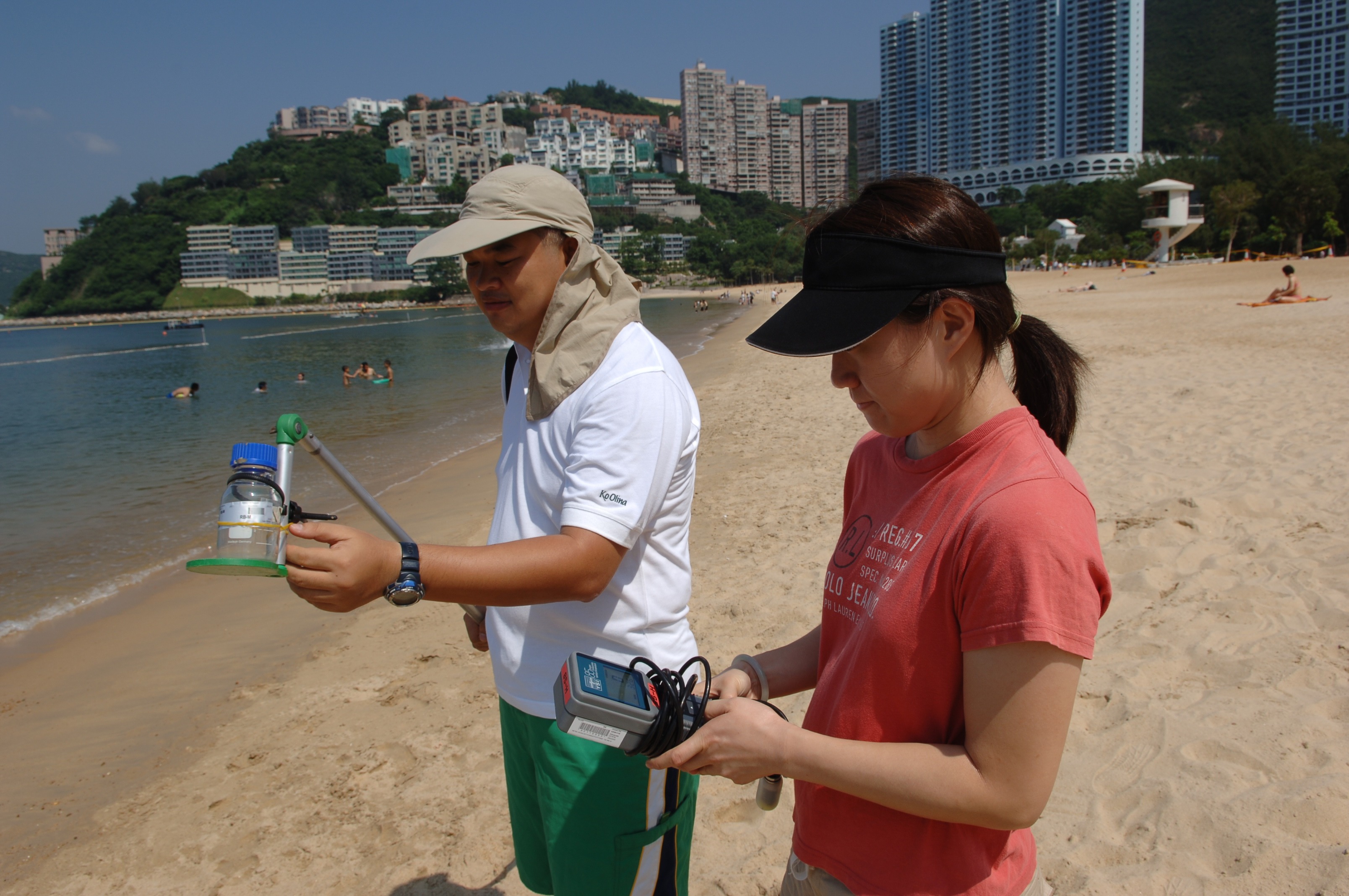 Collecting beach water at Hung Shing Yeh Beach in 1980s