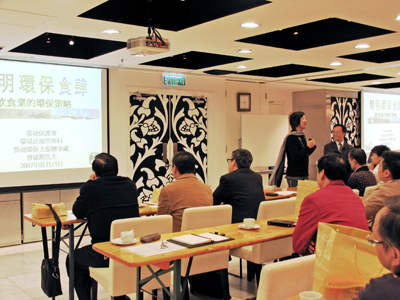 Business Facilitation Office of the Environmental Protection Department (EPD) was invited by the Department of Hotel, Service and Tourism Studies of the Hong Kong Institute of Vocational Education (Chai Wan) to give a talk to the participants of their Professional Diploma Course in Chinese Restaurant Management on 15 January 2007. The topic of the talk was "Smart Green Restaurant – Environmental Strategies of Restaurant Trade". The participants were briefed on environmental legislations, related green management measures and latest pollution control technologies. Dr. Sam Tsang, Senior Environmental Protection Officer of EPD, also made use of this activity to improve mutual understanding with trade partitioners, with a view to foster further communication and co-operation, in order to encourage the trade to incorporate green elements into their daily operations and contribute to the betterment of the enviornment.
